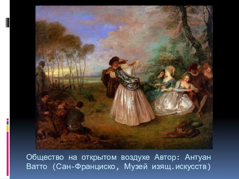 Слайд 26Общество на открытом воздухе Автор: Антуан Ватто (Сан-Франциско, Музей изящ.искусств)