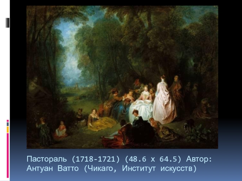 Слайд 30Пастораль (1718-1721) (48.6 х 64.5) Автор: Антуан Ватто (Чикаго, Институт искусств)