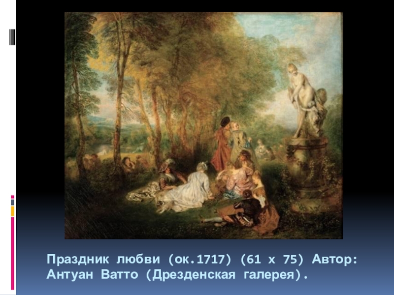 Слайд 8Праздник любви (ок.1717) (61 x 75) Автор: Антуан Ватто (Дрезденская галерея).