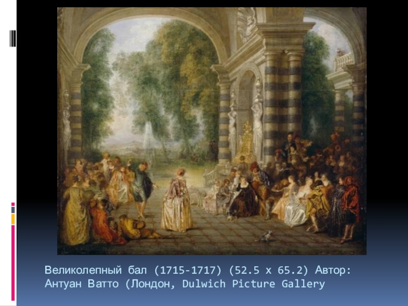 Слайд 25Великолепный бал (1715-1717) (52.5 х 65.2) Автор: Антуан Ватто (Лондон, Dulwich