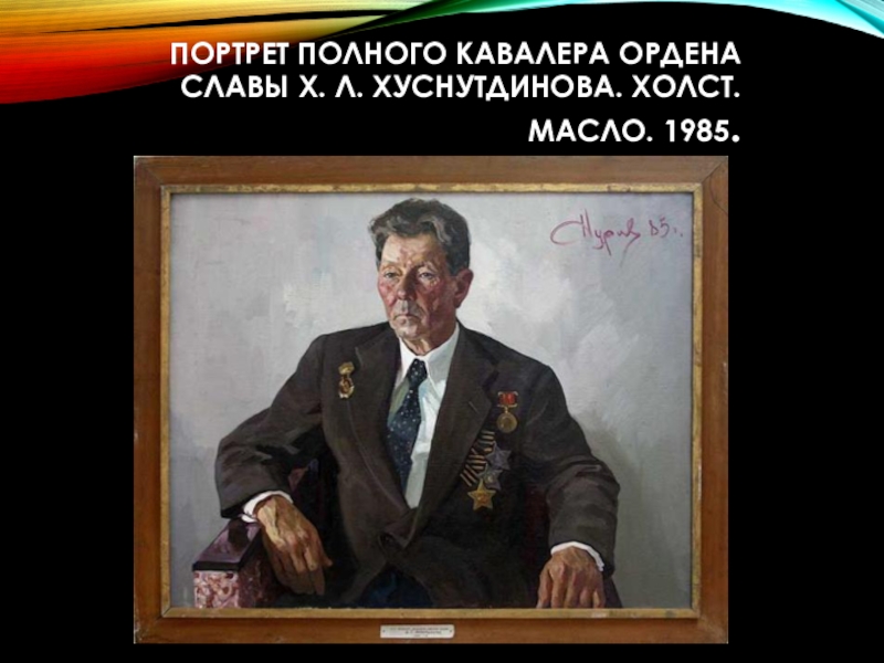 Слайд 18Портрет полного кавалера ордена Славы Х. Л. Хуснутдинова. Холст. Масло. 1985.