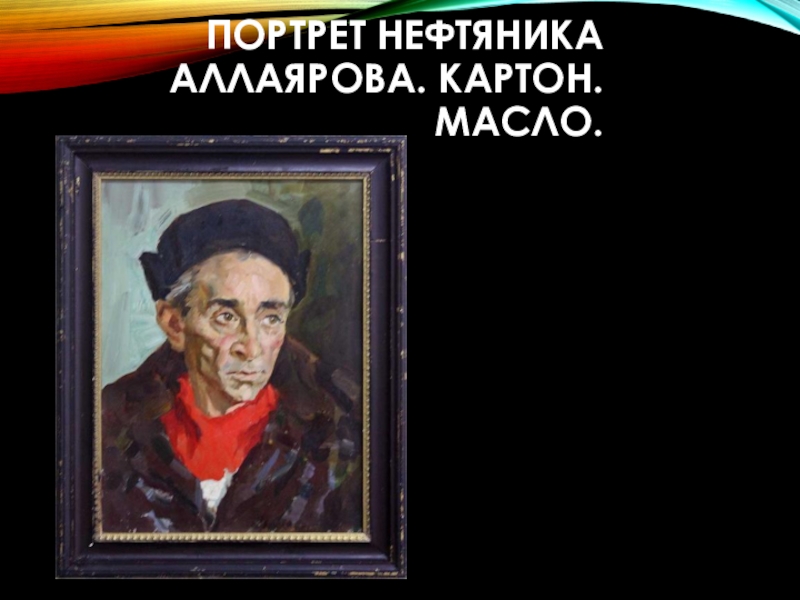 Слайд 16Портрет нефтяника Аллаярова. Картон. Масло.