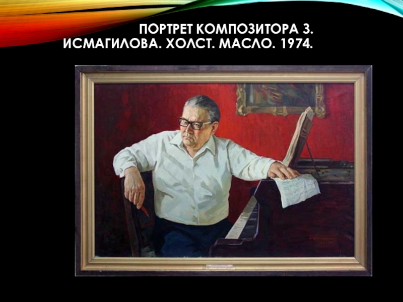 Слайд 20Портрет композитора З. Исмагилова. Холст. Масло. 1974.