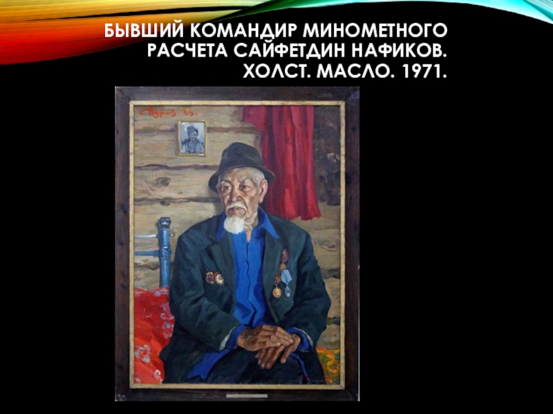 Слайд 19 Бывший командир минометного расчета Сайфетдин Нафиков. Холст. Масло. 1971.