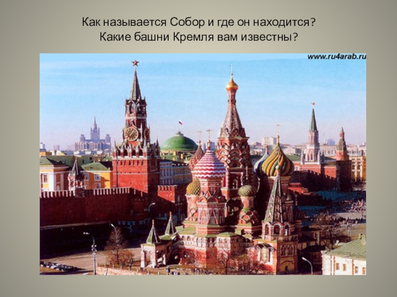 Слайд 25Как называется Собор и где он находится? Какие башни Кремля вам известны?