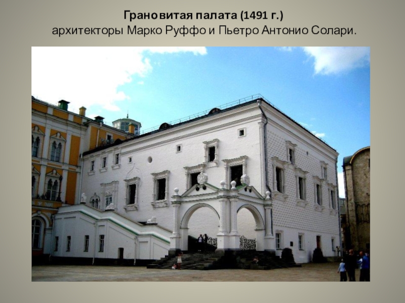 Слайд 18Грановитая палата (1491 г.) архитекторы Марко Руффо и Пьетро Антонио Солари.
