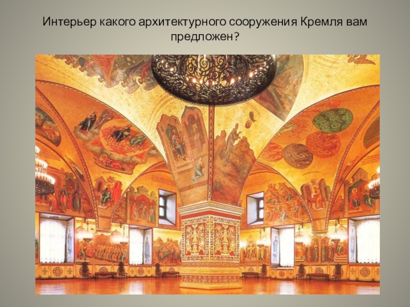 Слайд 23Интерьер какого архитектурного сооружения Кремля вам предложен?