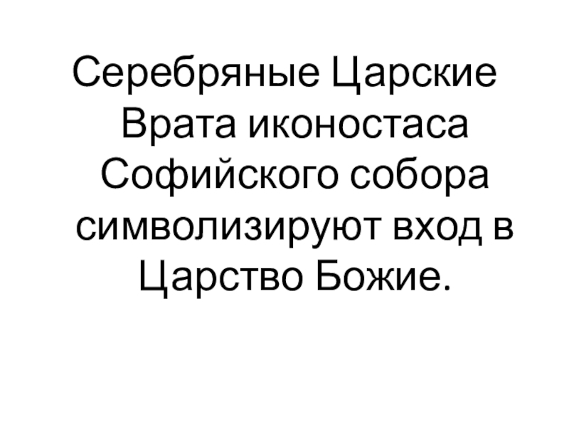Слайд 9Серебряные Царские Врата иконостаса Софийского собора символизируют вход в Царство Божие.