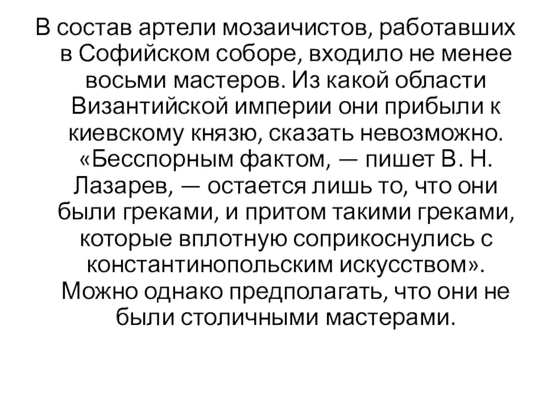 Слайд 33В состав артели мозаичистов, работавших в Софийском соборе, входило не менее