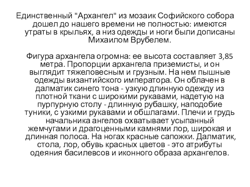 Слайд 22Единственный "Архангел" из мозаик Софийского собора дошел до нашего времени не