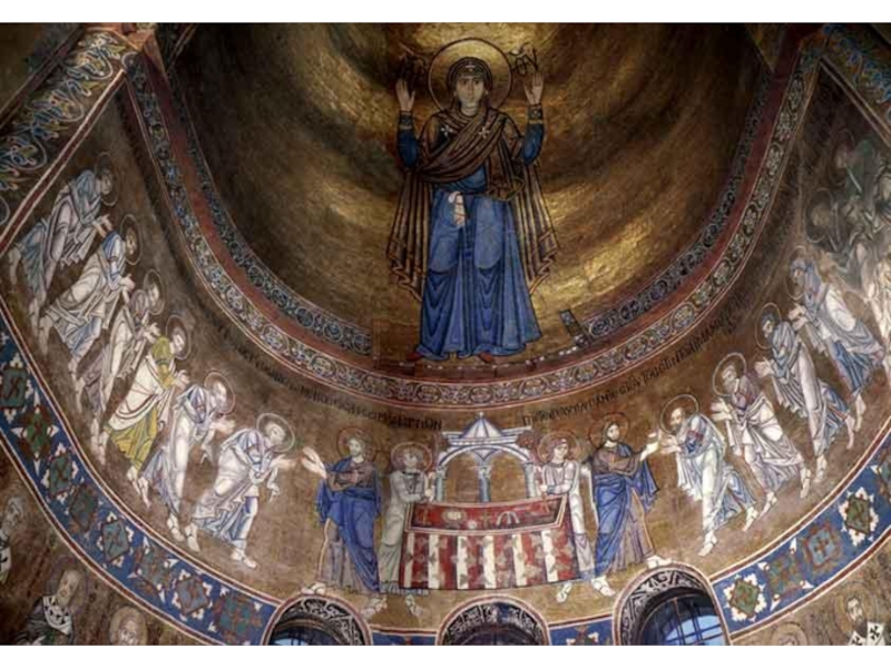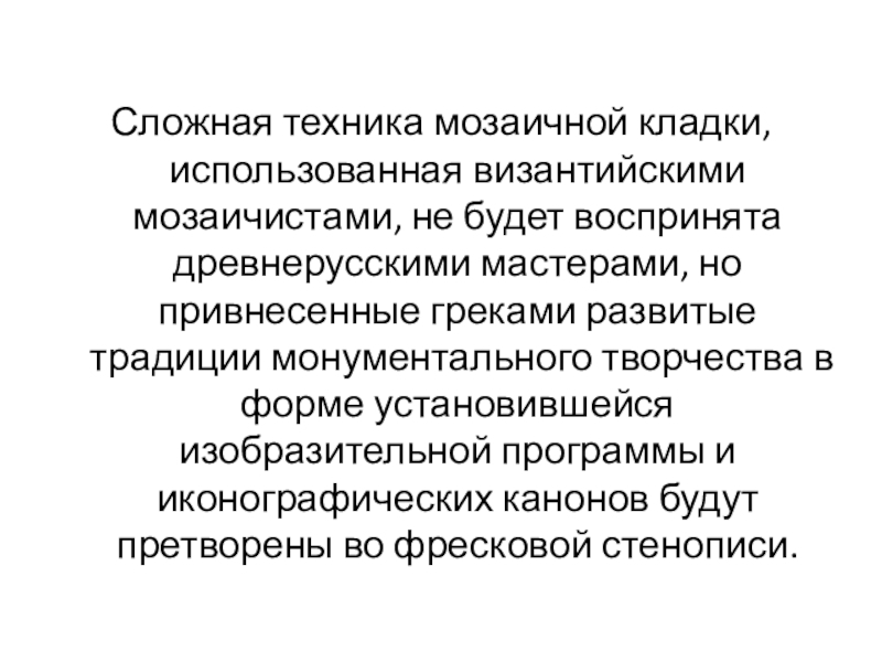 Сложная техника мозаичной кладки, использованная византийскими мозаичистами, не будет воспринята древнерусскими