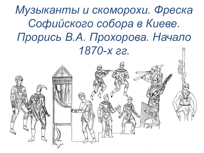 Музыканты и скоморохи. Фреска Софийского собора в Киеве. Прорись В.А. Прохорова.