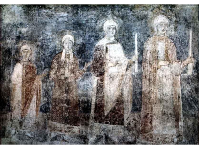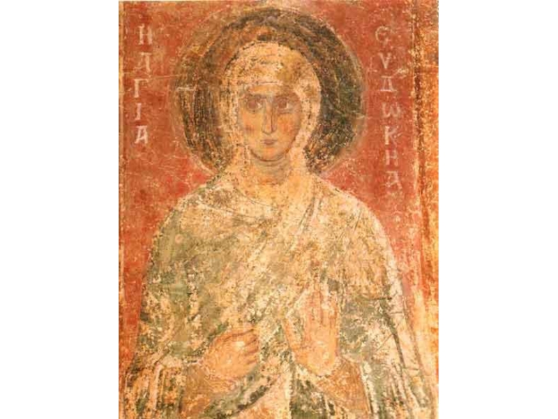 Слайд 36Среди фресок Софии Киевской выделяется своей выразительностью изображение святой преподобномученицы Евдокии.