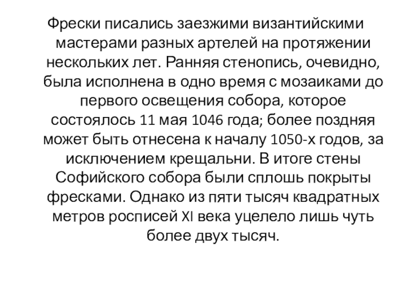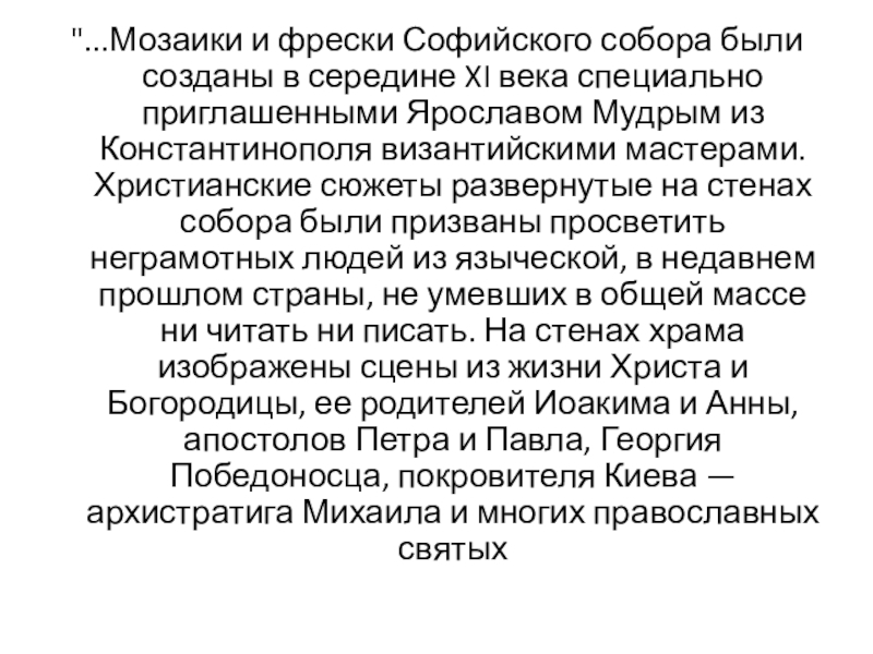 Слайд 8"...Мозаики и фрески Софийского собора были созданы в середине XI века