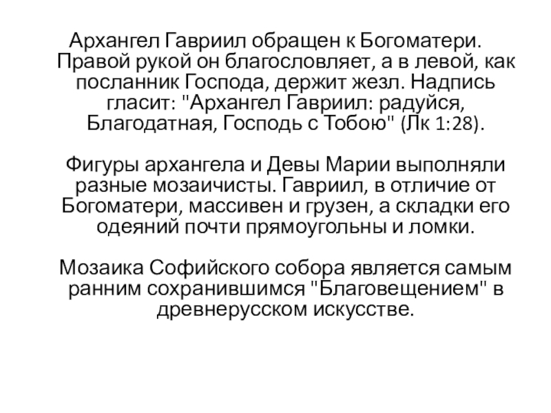 Мозаика Софийского собора является самым ранним сохранившимся "Благовещением" в древнерусском искусстве.