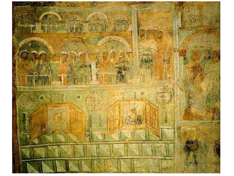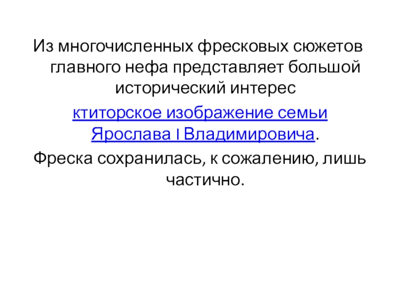 Слайд 40Из многочисленных фресковых сюжетов главного нефа представляет большой исторический интерес