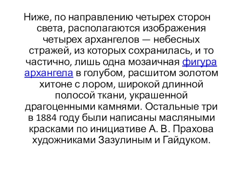 Слайд 20Ниже, по направлению четырех сторон света, располагаются изображения четырех архангелов — небесных