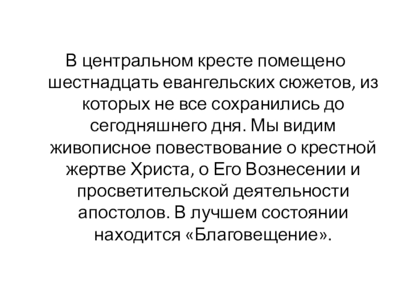 Слайд 38В центральном кресте помещено шестнадцать евангельских сюжетов, из которых не все