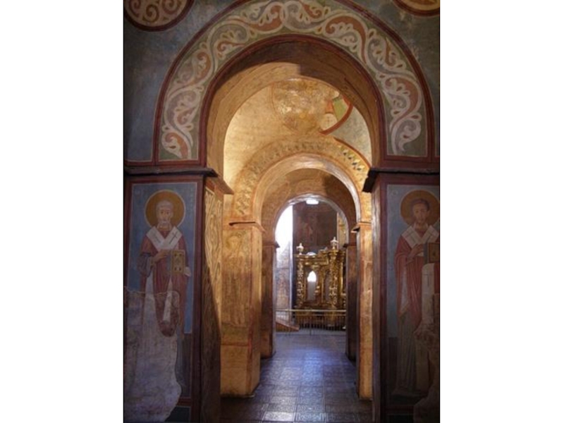 сохранившаяся фреска «Апостол ПавелНаконец, в боковом нефе был Петропавловский придел, где находится достаточно хорошо сохранившаяся фреска «Апостол Павел». В ходовых галереях, где помещены изображения святых, обращают на себя внимание «ЕвдокияНаконец, в боковом нефе был Петропавловский придел, где находится достаточно хорошо сохранившаяся фреска «Апостол Павел». В ходовых галереях, где помещены изображения святых, обращают на себя внимание «Евдокия» (пилон западной галереи), и парное изображение АдрианаНаконец, в боковом нефе был Петропавловский придел, где находится достаточно хорошо сохранившаяся фреска «Апостол Павел». В ходовых галереях, где помещены изображения святых, обращают на себя внимание «Евдокия» (пилон западной галереи), и парное изображение Адриана и Наталии на арке северной наружной галереи.