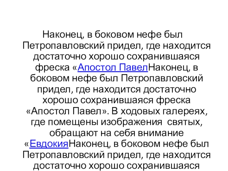Слайд 46Наконец, в боковом нефе был Петропавловский придел, где находится достаточно хорошо