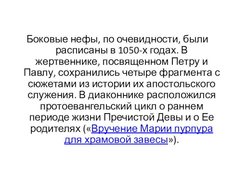Слайд 42Боковые нефы, по очевидности, были расписаны в 1050-х годах. В жертвеннике,