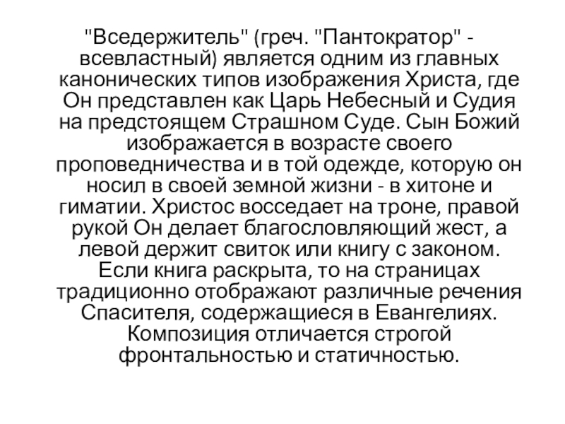 Слайд 17"Вседержитель" (греч. "Пантократор" - всевластный) является одним из главных канонических типов