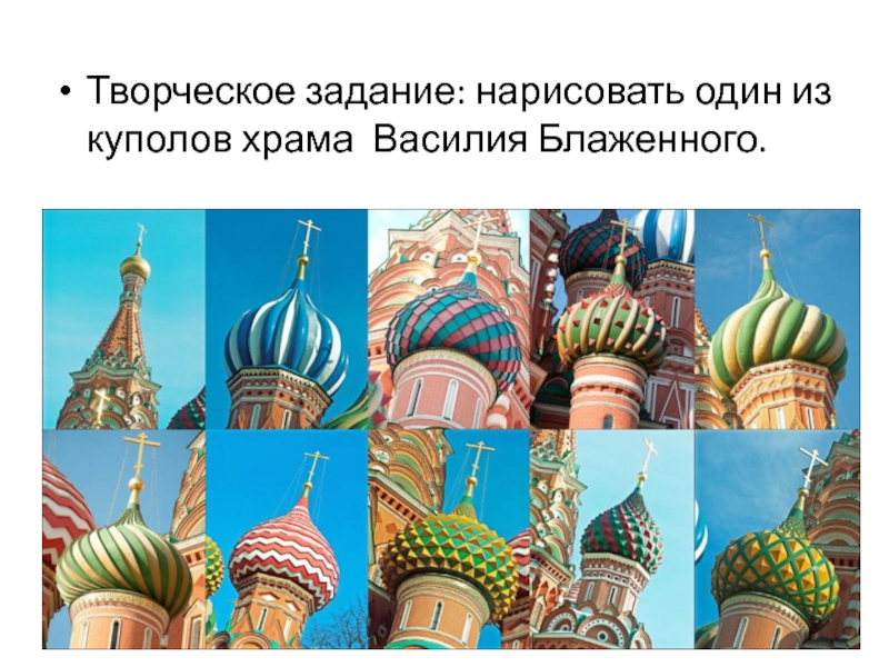 Слайд 47Творческое задание: нарисовать один из куполов храма Василия Блаженного.
