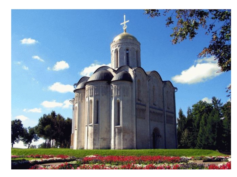 построен князем Всеволодом Большое Гнездо в 1194 - 1197 годах в честь рождения княжеского сына Дмитрия. Дмитриевский собор знаменит на весь мир своей белокаменной резьбой, рельефы на его стенах изображают святых, мифических и реальных животных.