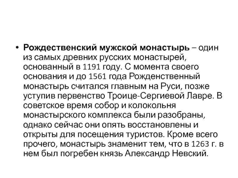 Слайд 25Рождественский мужской монастырь – один из самых древних русских монастырей, основанный