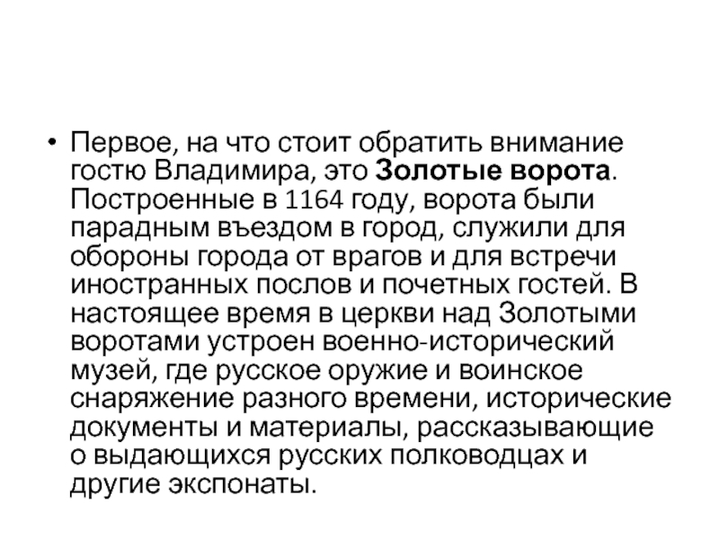 Слайд 21Первое, на что стоит обратить внимание гостю Владимира, это Золотые ворота.