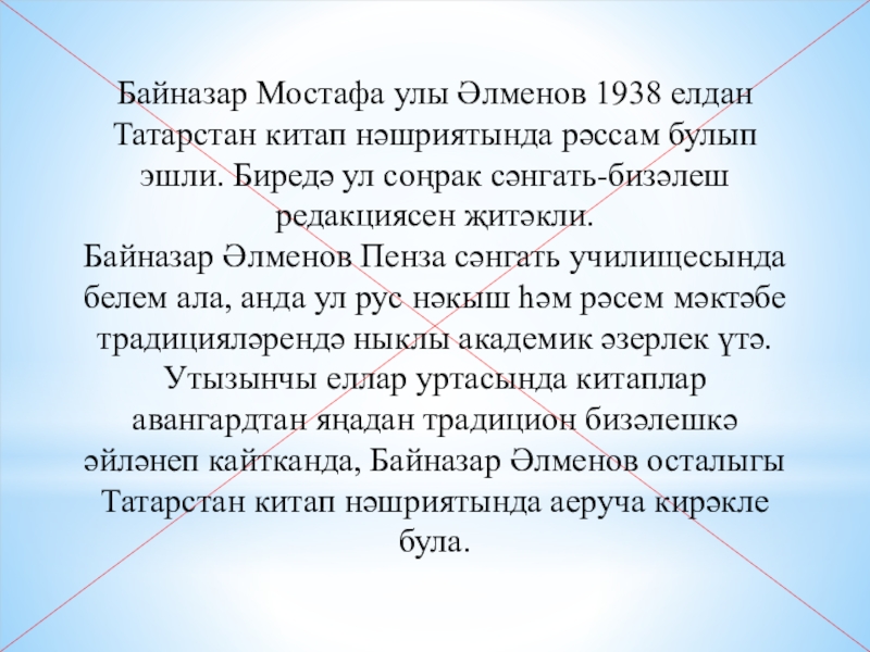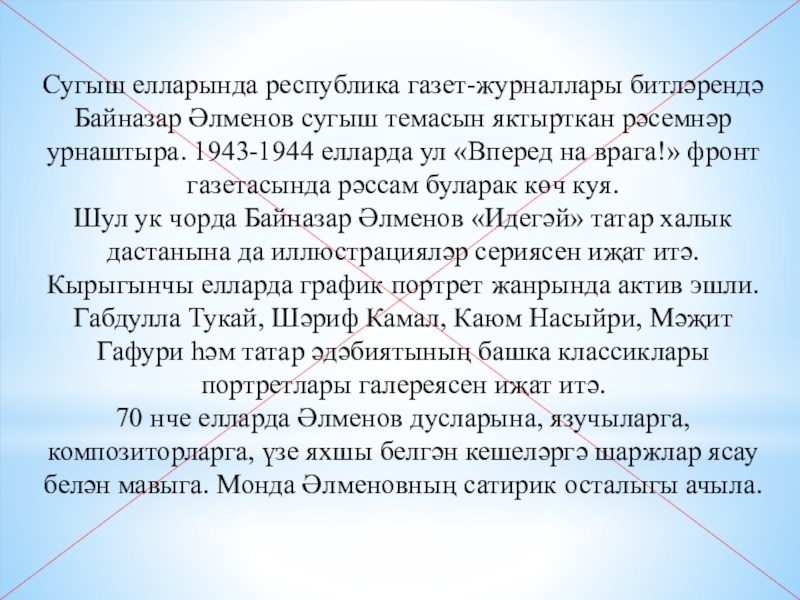 деятель искусств Татарской ССР. 14 августа 1909 года родился в дер. Кзыл-Мечеть Оренбургской области. 1934 год — окончил Пензенский художественно-педагогический техникум. 1943–1944 годы — участник Великой Отечественной войны. 1939 год — член Союза художников России. 1957 год — Заслуженный деятель искусств Татарской АССР. В 1976 году умер в г. Казани. С 1935 года жил и работал в г. Казани.