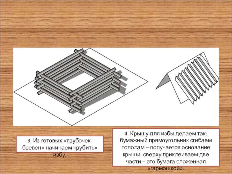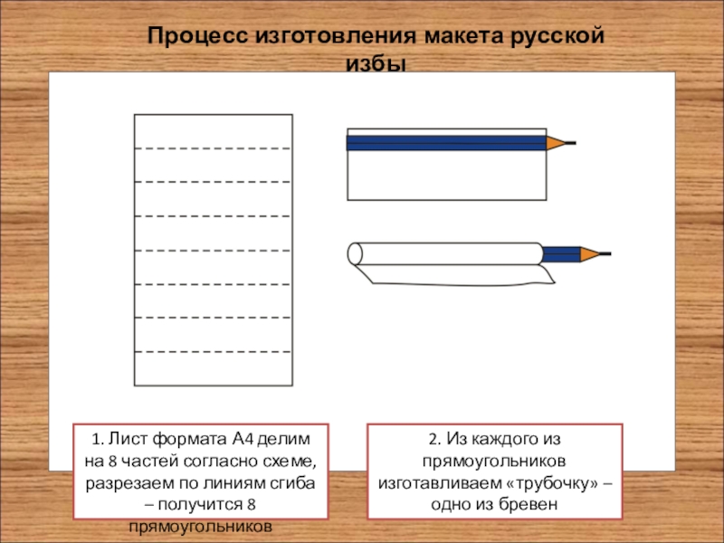 2. Из каждого из прямоугольников изготавливаем «трубочку» – одно из бревен
