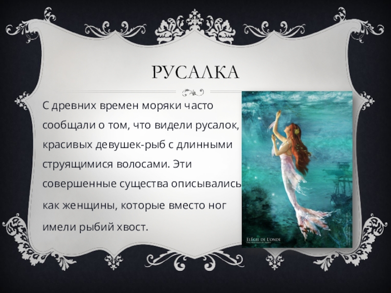 красивых девушек-рыб с длинными струящимися волосами. Эти совершенные существа описывались,