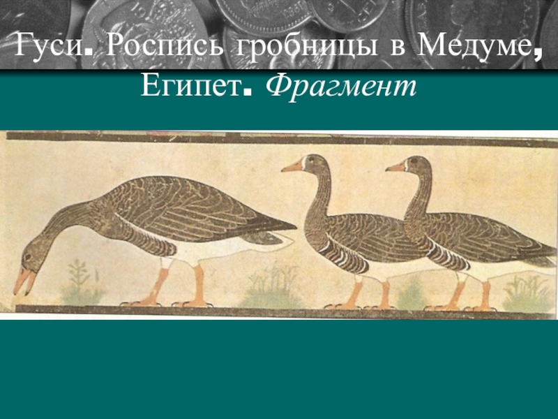 Слайд 9Гуси. Роспись гробницы в Медуме, Египет. Фрагмент