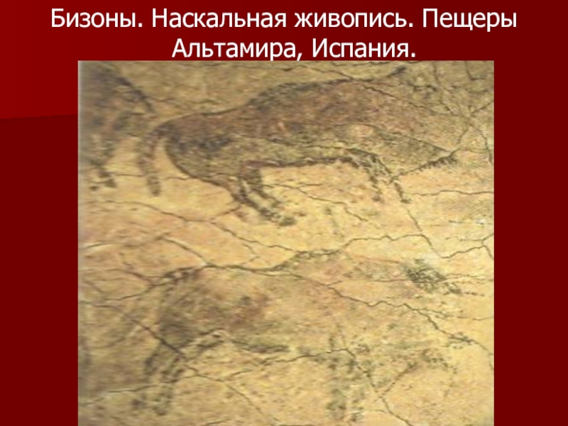 Слайд 2Бизоны. Наскальная живопись. Пещеры Альтамира, Испания.