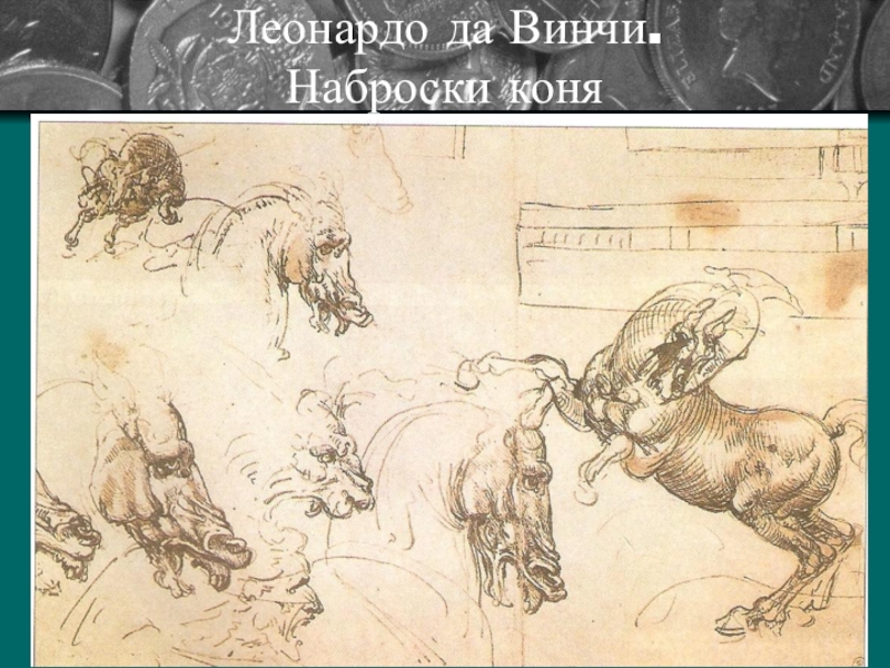 Слайд 15Леонардо да Винчи. Наброски коня