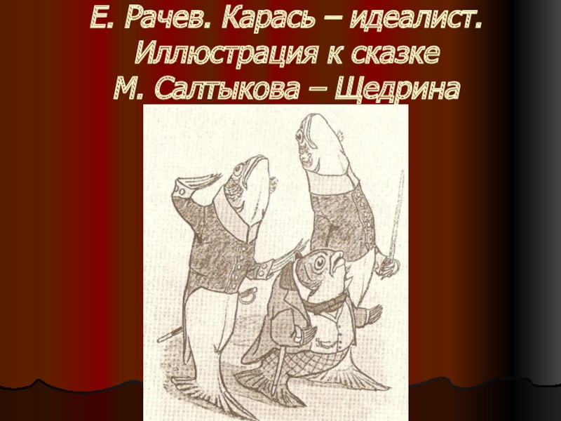 Слайд 36Е. Рачев. Карась – идеалист. Иллюстрация к сказке М. Салтыкова –