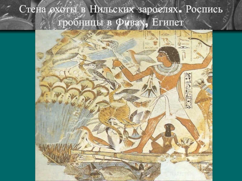 Слайд 8Стена охоты в Нильских зарослях. Роспись гробницы в Фивах, Египет