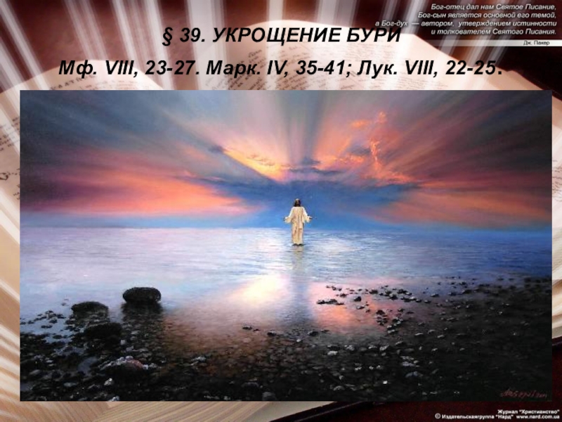 Слайд 6§ 39. УКРОЩЕНИЕ БУРИ Мф. VIII, 23-27. Марк. IV, 35-41; Лук. VIII,
