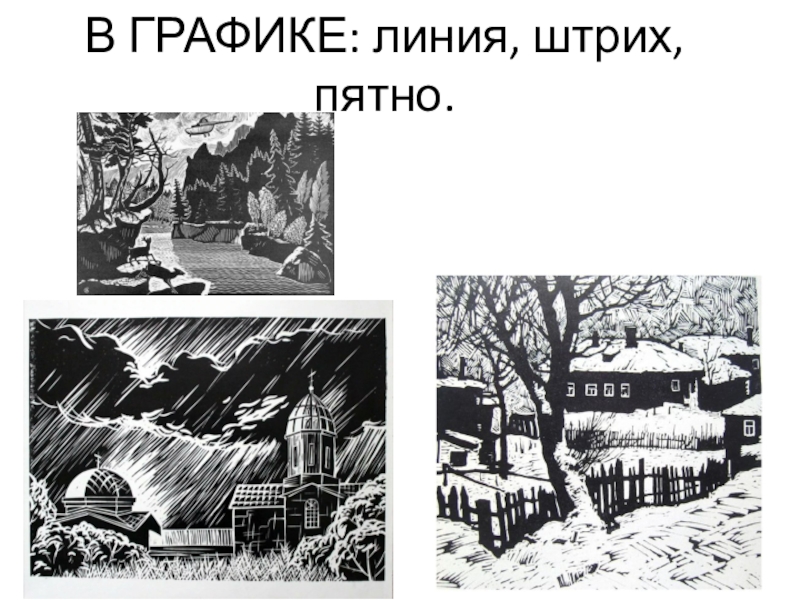 Слайд 8В ГРАФИКЕ: линия, штрих, пятно.