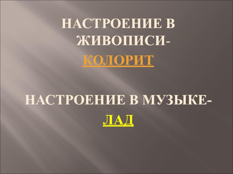 НАСТРОЕНИЕ В ЖИВОПИСИ-КОЛОРИТНАСТРОЕНИЕ В МУЗЫКЕ-ЛАД