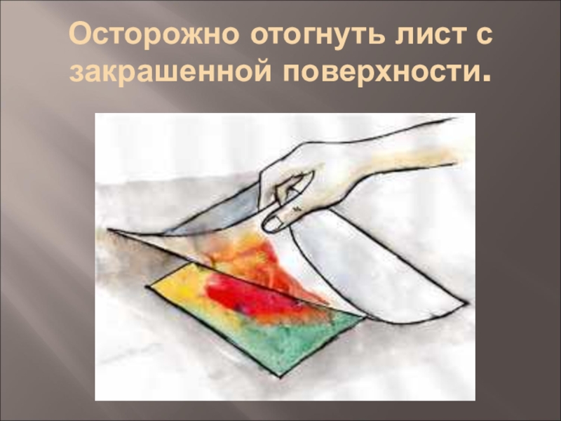 Слайд 15Осторожно отогнуть лист с закрашенной поверхности.