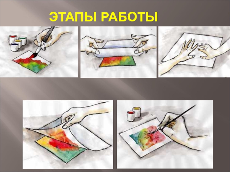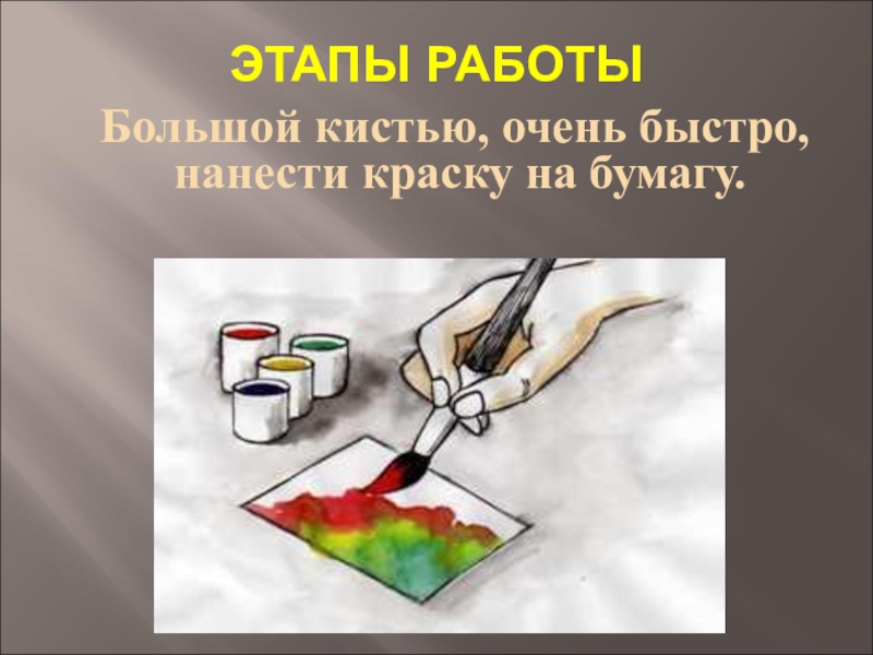 ЭТАПЫ РАБОТЫ	Большой кистью, очень быстро, нанести краску на бумагу.