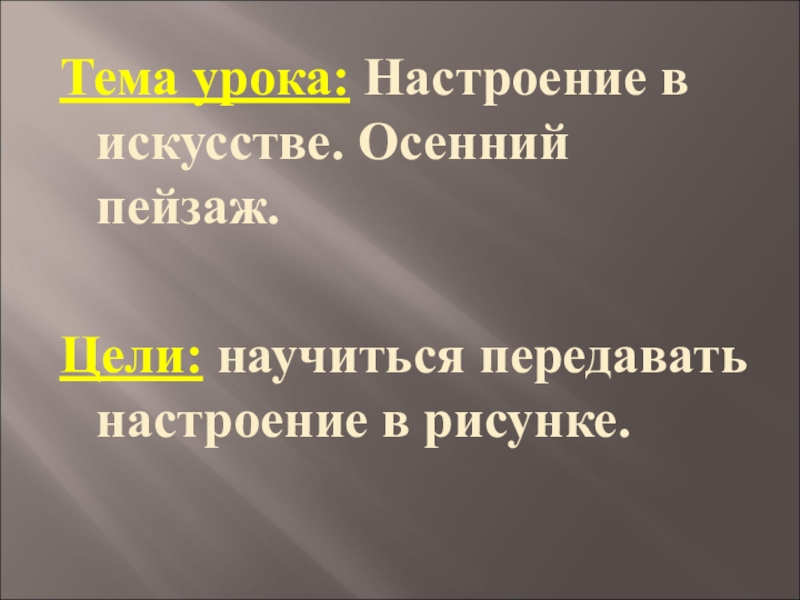 Тема урока: Настроение в искусстве. Осенний пейзаж.Цели: научиться передавать настроение в рисунке.
