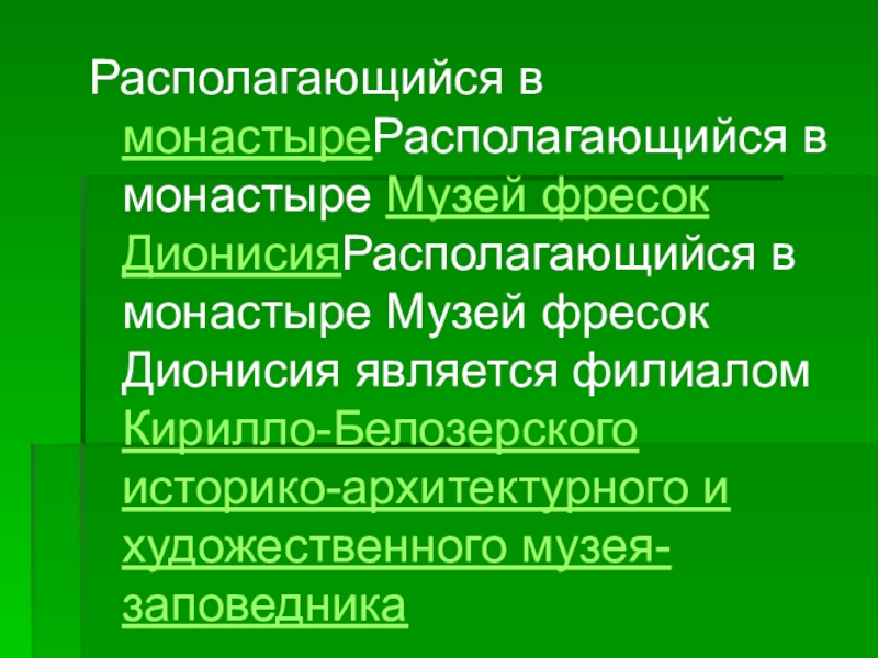 Располагающийся в монастыреРасполагающийся в монастыре Музей фресок ДионисияРасполагающийся в монастыре Музей