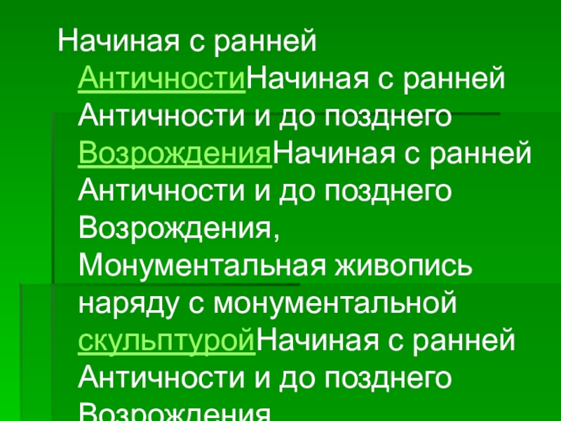 Начиная с ранней АнтичностиНачиная с ранней Античности и до позднего ВозрожденияНачиная