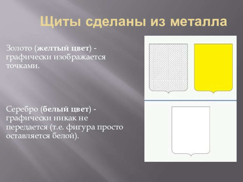Серебро (белый цвет) - графически никак не передается (т.е. фигура просто оставляется белой).