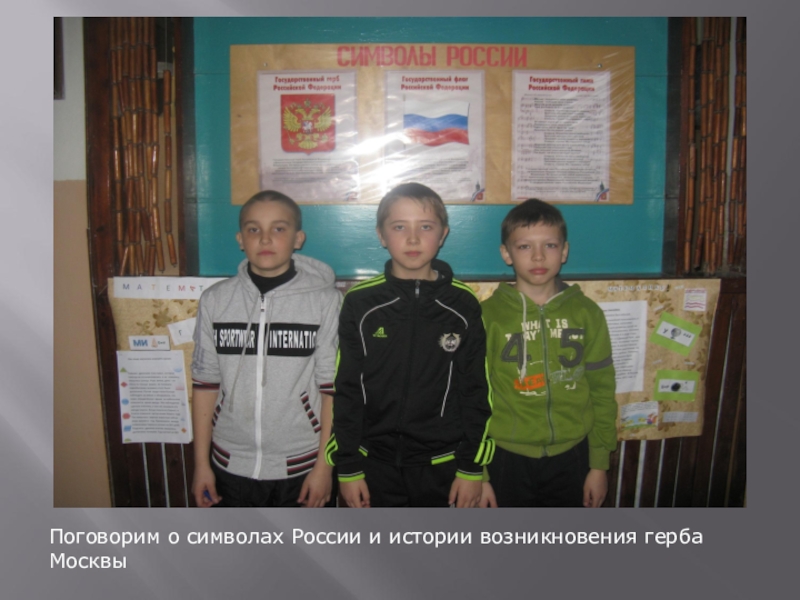 Слайд 15Поговорим о символах России и истории возникновения герба Москвы