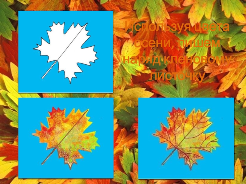 Слайд 10Используя цвета осени, пишем наряд кленовому листочку