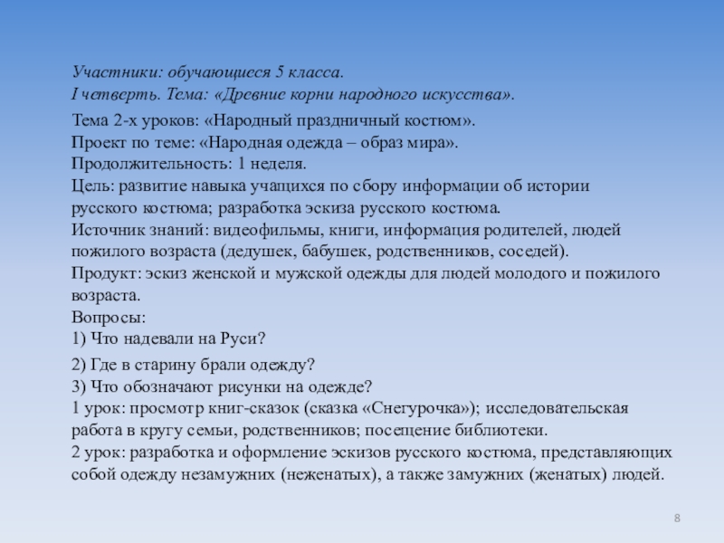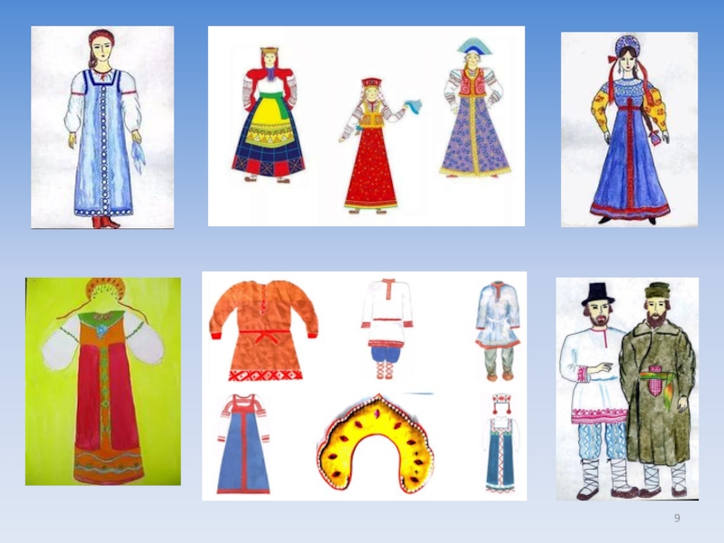 2 урок: разработка и оформление эскизов русского костюма, представляющих собой одежду незамужних (неженатых), а также замужних (женатых) людей.